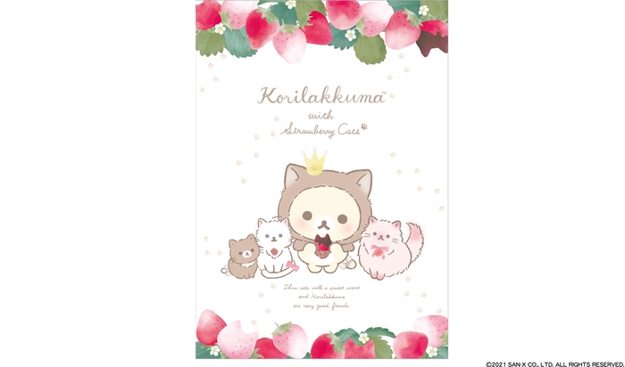 そして、2021年、今年も「コリラックマストア」を有楽町マルイに開店いたします。メインアートは、大好きないちごと、あま~い香りがする3匹のねこに囲まれたコリラックマを中心に描かれたとてもかわいいデザインになっています。それぞれのねこたちの格好をしたコリラックマにも注目です。