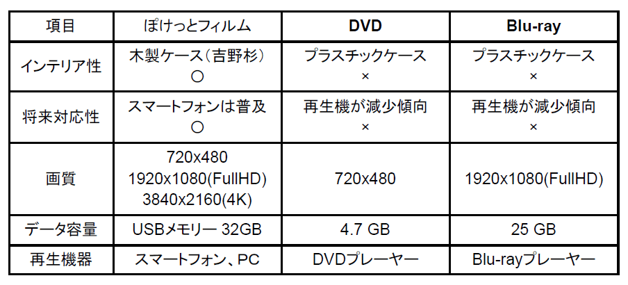 これからDVDやBlu-rayの再生環境が減少していく中で、想い出を“カタチ”として残すことが難しくなる中、「ぽけっとフィルム」は、手に取ることができる温もりあるデジタルの映像アルバムとして誕生しました。