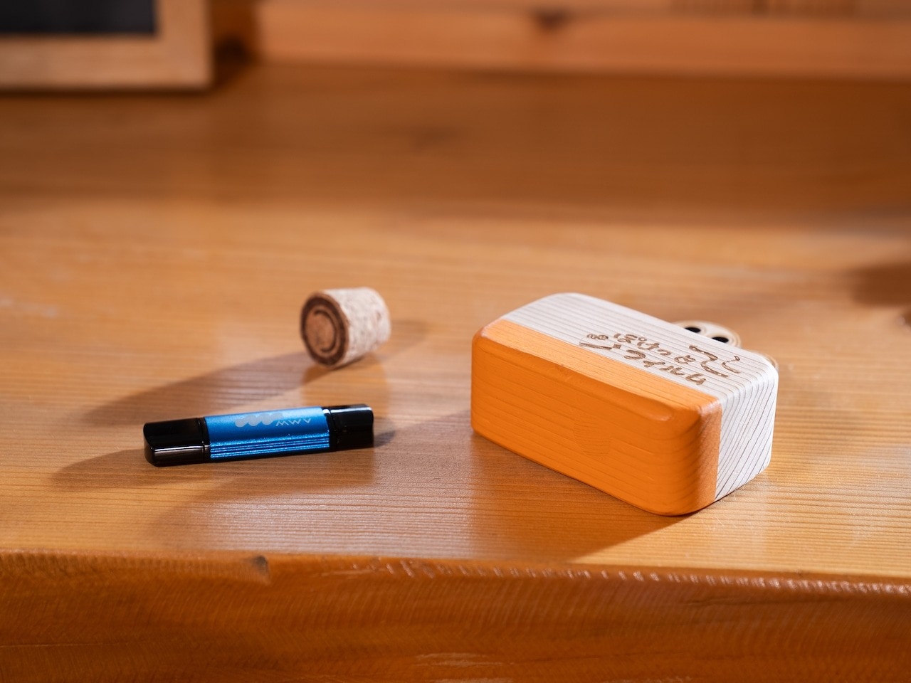 「ぽけっとフィルム」とは、500年以上の歴史をもつ吉野林業にて育てられた吉野杉を使用し、奈良県葛城市の木工作家 SUGGY(スッギー)氏(木育インストラクター)と株式会社MWVが共同開発した木製ケースです。レンズ型のコルクを外すと中には、スマートフォンに直接接続ができるUSBメモリーが入っています。地域の林業資源と職人の技を活かし、デザイン性・木育・地域活性化を兼ね備えた、子どもたちの想い出を未来へつなぐ商品です。