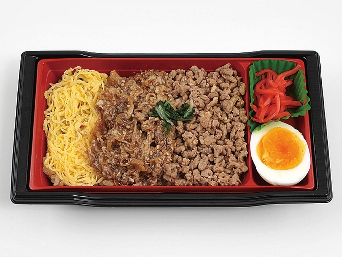 脂の乗った牛バラ肉を柔らかく煮た牛肉煮と、パラパラになるように仕上げた牛そぼろと牛肉づくしのメニューです。
