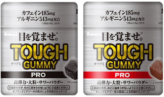 今春発売の『タフグミ PRO カフェイン ジンジャーレモン』とボトル容器を採用した『タフグミ PRO カフェイン ブラックエナジー』『同 レッドエナジー』というカフェイン・アルギニンを配合した3つの『タフグミ PRO』は、パフォーマンスのギアを入れ加速させたいニーズを持つ方々から熱い支持をいただいています※3。