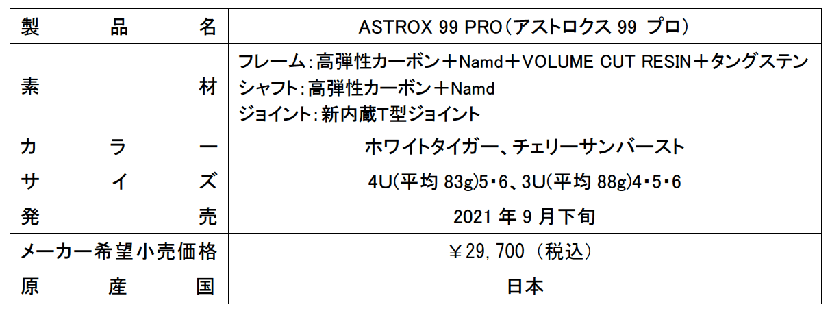 強力パワーと自在の打ち分けを実現 ショットの威力と球持ちが向上したバドミントンラケット 「ASTROX(アストロクス)99 PRO」「ASTROX 99 GAME」 2021年9月下旬より発売