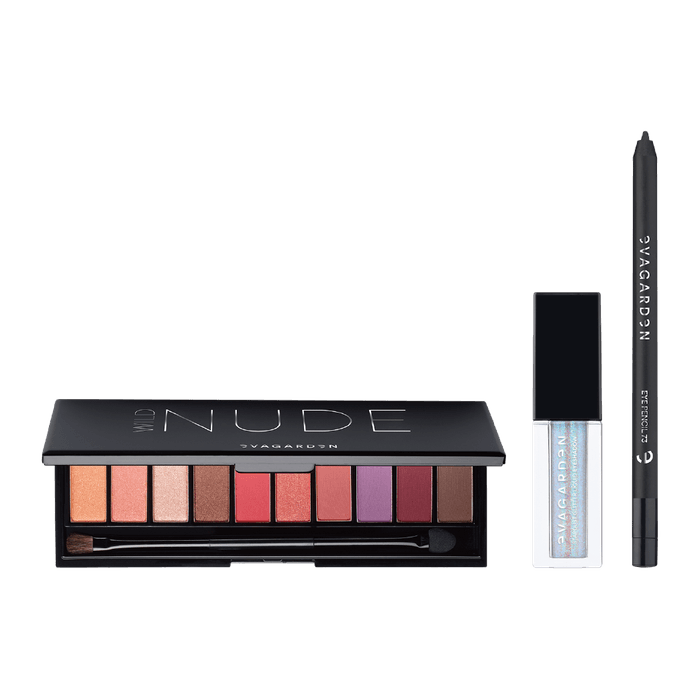 しっとりしながらつけたての発色が続く「アイシャドウ パレット ワイルドヌード」に、華やかな光を目元に与える「スターダスト グリッター アイシャドウ(限定色420)」と美しいラインを長時間キープできる「アイライナーペンシル(BK or BR)」が揃ったセットで、ナチュラルメイクからトレンドメイクまで幅広いアイメイクをお楽しみいただけます。