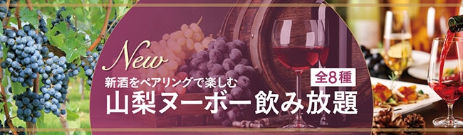【新酒をペアリングで楽しむ 山梨ヌーボー全8種飲み放題】