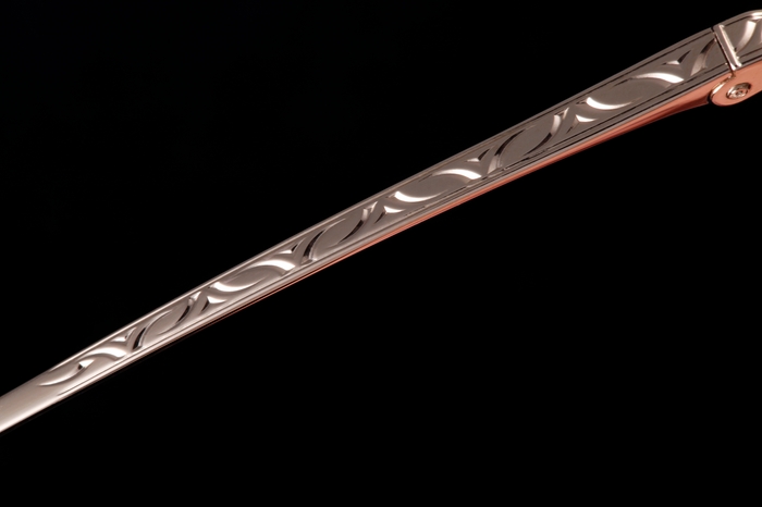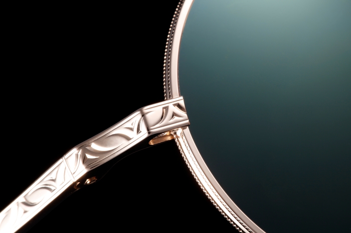 「イチヤマ」といわれる鼻パッドがないデザインは、ビンテージフレームの定石ともいえるスタイルを見事に復刻している。そのアングル、高さは日本人の鼻の高さを意識して型を新規に起こし、最良の掛け心地を実現。クラシカルなディテールを持つ彫金風のヨロイ、テンプルは、メタルフレームならではの繊細さと質感を併せ持つデザインに仕上げられた。