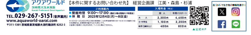 料金    :大人2,300円 小中学生1,100円 幼児(3歳以上)400円 (すべて税込)