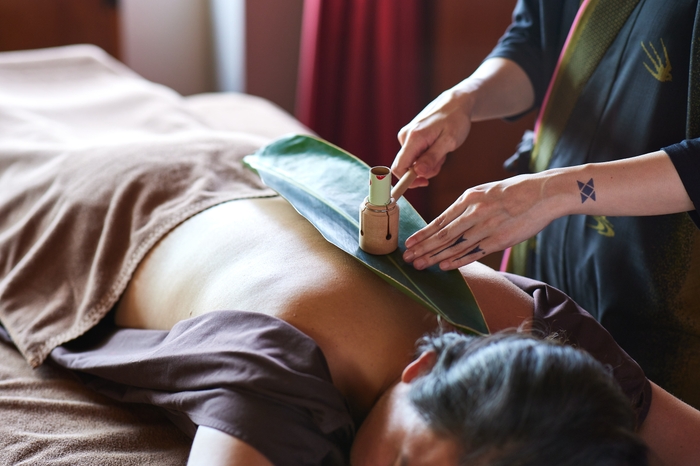古より今も親しまれている県産の薬草で作ったハーバルボールを蒸し、蒸気で身体を温めながらマッサージを行い、全身の循環を促しながら本来持つ生命力を高めていきます。