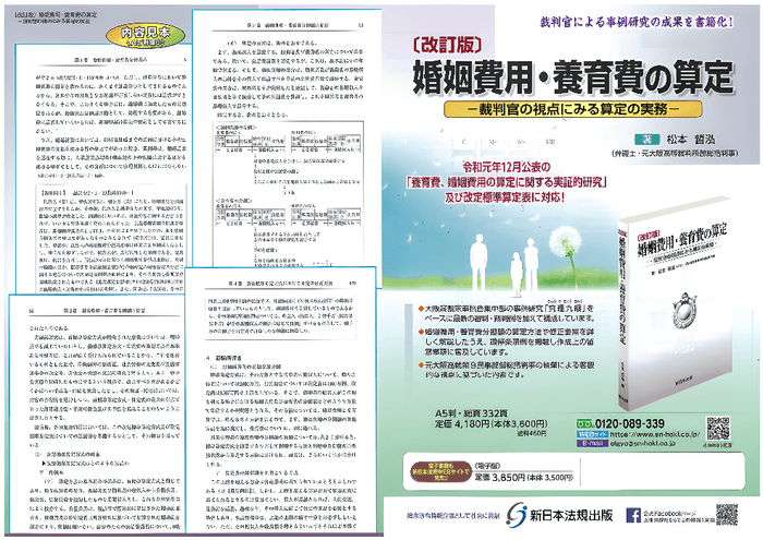 新日本法規出版株式会社(所在地:愛知県名古屋市中区栄1丁目23番20号、代表取締役:星謙一郎 (https://www.sn-hoki.co.jp/))は、2020年6月に発行した「〔改訂版〕婚姻費用・養育費の算定-裁判官の視点にみる算定の実務-」を増刷し、2024年4月19日(金)に入荷いたしました。
