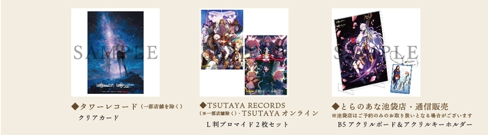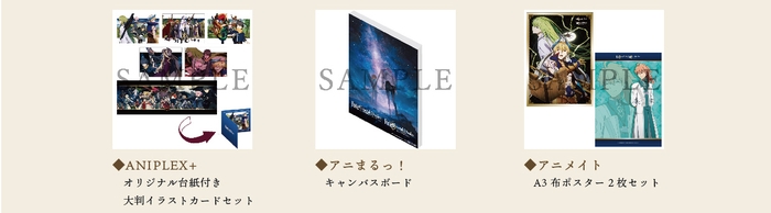 対象店舗:ANIPLEX+、アニまるっ!、アニメイト、Amazon(【Amazon.co.jp限定】商品のみ対象)、あみあみオンラインショップ、げっちゅ屋(getchu.com)、ゲーマーズ、セブンネットショッピング、ソフマップ・アニメガ、TSUTAYAオンライン、とらのあな池袋店・通信販売 ※池袋店はご予約のみのお取り扱いとなる場合がございます、メロンブックス、楽天ブックス(特典付きのみ対象)、WonderGOO/新星堂、HMV