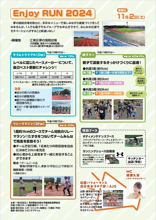 【参加費無料】11月2日(土)江東区・夢の島競技場で「Enjoy Run2024」参加者募集中
