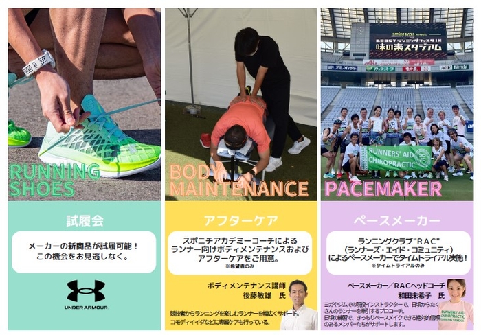 実施内容は3種目。競技場のトラックをペースメーカーと走る「タイムトライアル」では、1kmあたり4分から6分の設定で5km走ります。自分のレベルに合わせて参加でき、実力把握につながります。