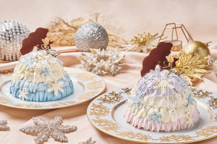 グラデーションカラーの生クリームに、雪の結晶型のホワイトチョコを散りばめ、美しく広がるプリンセスのドレスを表現しました。お好みでパープルorブルーの2色からお選びいただけます。