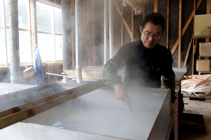 津軽海峡の沖合80mの地下20mから汲み上げた海水をタンクに貯蔵し、機械でろ過、紫外線殺菌した上で“直煮法”という昔ながらの製法で作ります。