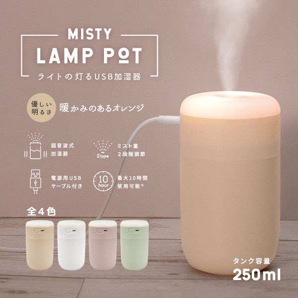 2段階のミスト量調節もでき、最大で連続約10時間の使用ができる便利アイテムです。