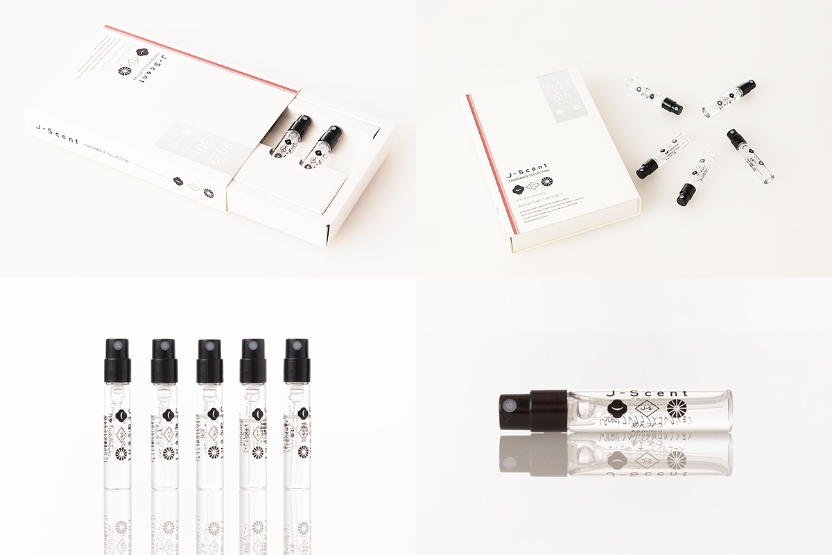 会期中はJ-Scentの定番商品(オードパルファン、パフュームオイル)に加え、5周年記念セットも発売。是非この機会にJ-Scentの香りの世界をお楽しみください。