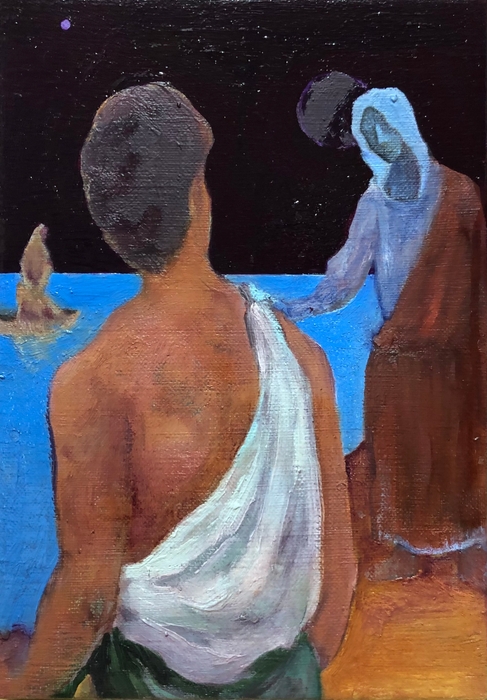 大矢は、日常に起きる凡庸な人々の営みから聖書に住む聖人の世界まで、様々なレベルで引き起こされる出来事とその出来事に翻弄される人間の感情をカンバスにとどめています。