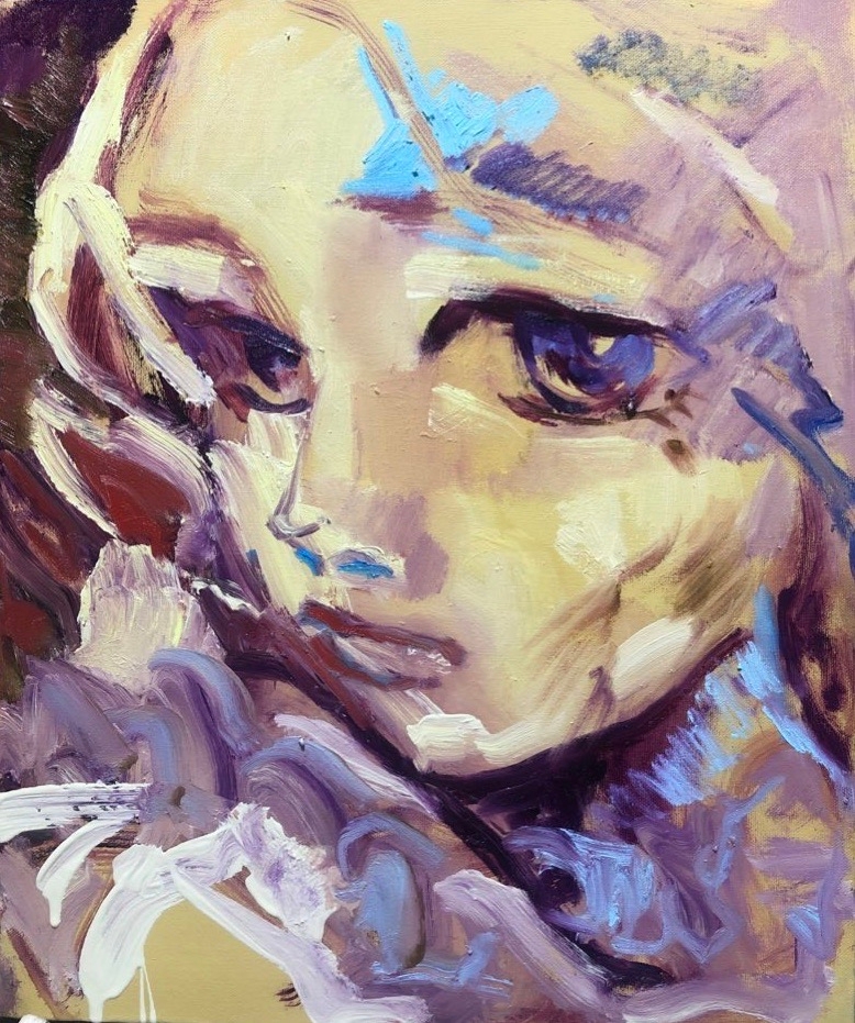 私の作品は、人間関係と、その社会の中で起こる物語を描いています。抽象的な作品、具象的な作品どちらを通しても、そこには常に人間の存在や物語が存在しています。その物語を、私の手で絵画として紡ぎ出すことが私の目標です。