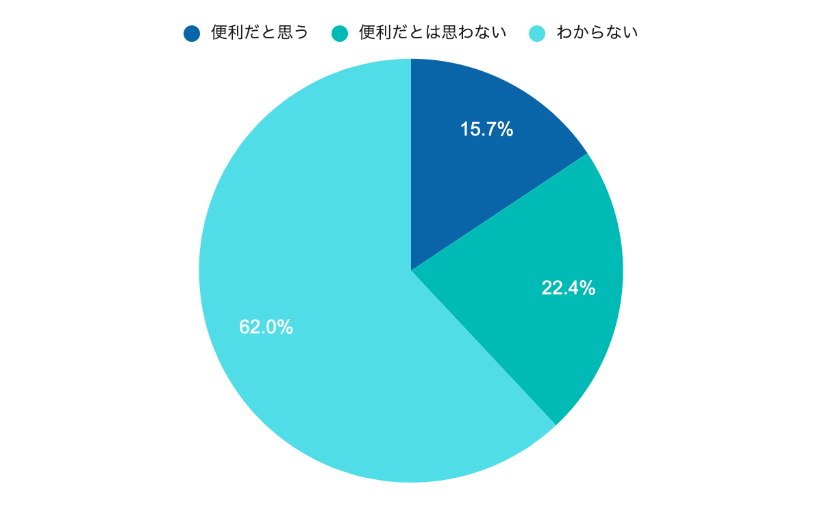自治体の地域通貨について、「便利だと思う」と回答したのは15.7%、「便利だとは思わない」と回答したのは22.4%で、便利だと感じていない人のほうがやや多いことが分かりました。