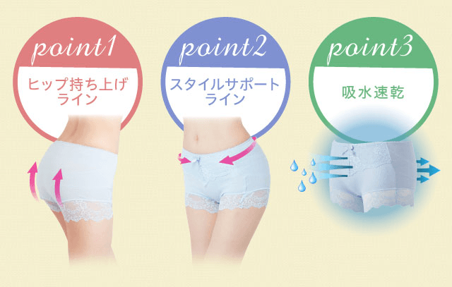 上向きで丸い理想のお尻に近づける「ヒップ持ち上げライン」と履くだけで美しい姿勢に導く「スタイルサポートライン」により、お尻のスタイルアップを実現します。