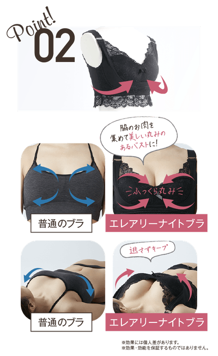 ※エレアリーナイトブラをパックの上から着用するとより効果的です。