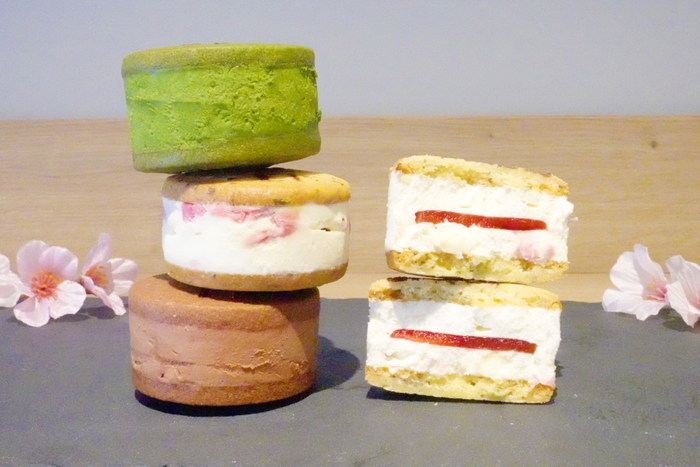 クッキー生地に桜の葉を練り込み、クリームには桜の花と自家製いちごジャムを入れました。食べた瞬間、春の香りが口いっぱいに広がります。