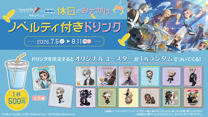 株式会社GENDA GiGO Entertainment(本社:東京都港区 代表取締役社長:二宮 一浩 以下、「当社」)は、非対称対戦型マルチプレイヤーゲーム『Identity V(第五人格)』とタイアップした 第五人格×GiGOキャペーン~休日おでかけ~ を2025年7月5日(土)より開始いたします。