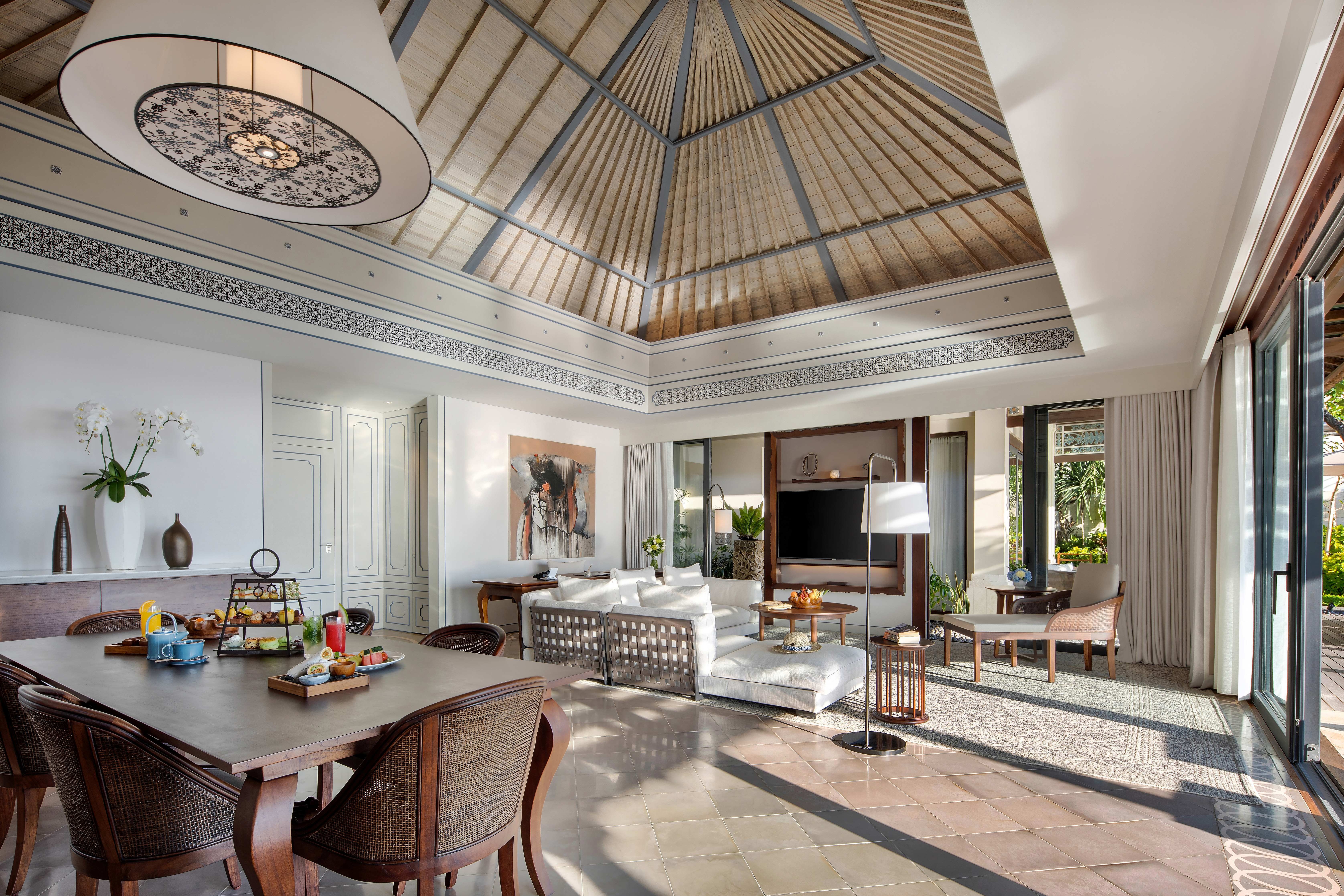 「2ベッドルーム・オーシャン・ヴィラ・ウィズ・プライベート・プール」は、水平線も見渡せる緑豊かな原生林の中にあり、ドリームランド・ビーチからもほど近い静謐な隠れ家です。本を読みながらくつろいだり、プライベートプールで泳いだり、テラスでバトラーに飲み物をサーブしてもらったり、または、落ち着いた色調でまとめられたスイートルームで心地よい波の音とともに気持ち良い眠りの時間を楽しんだり、自由にくつろぎの時間をお過ごしいただけます。