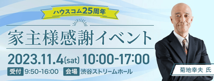 リアル拠点と不動産DXのシナジーでライフスタイルデザインを追求するハウスコム株式会社〔所在地:東京都港区 代表取締役社長執行役員:田村 穂 スタンダード市場 コード番号:3275、以下ハウスコム〕は、家主との接点強化を目的に「ハウスコム25周年家主様感謝イベント」を11月4日(土)渋谷会場にて開催します。