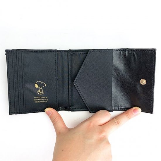 中を開くと、コインケースとお札入れ、カードポケットがあります。コンパクトなのに収納スペースも充実しているので、携帯にもとっても便利♪内側にまでスヌーピーのイラストが入っています。