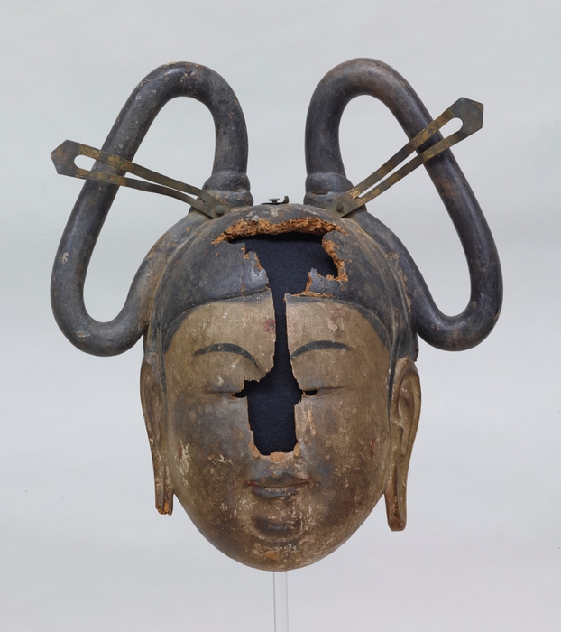 伎楽面は、法隆寺献納宝物(東京国立博物館蔵)の31面のほか、正倉院や東大寺に伝わります。現存するほとんどが奈良時代の作ですが、法隆寺伝来の伎楽面には、飛鳥時代の作が含まれることが特徴です。