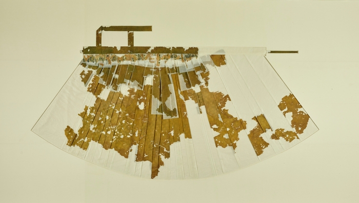 現在は残欠として伝えられる伎楽装束ですが、原品の解体修理と並行して復元模造を製作しました。修理時の知見を活かし、古代の染織技法を再現したことで、製作当時の華やかな彩りがよみがえりました。