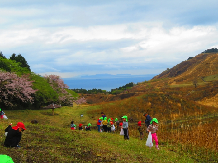 広大な高原の中、伊豆の春の味覚の山菜狩りをお楽しみください。