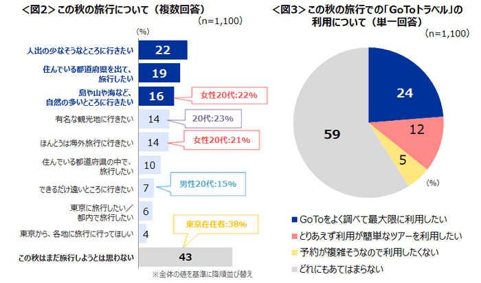 性年代別にみると、「この秋はまだ旅行しない」人は43%だが、東京在住者では38%となり、旅行したい気持ちは東京在住者がやや高い傾向が見られた。<図2>