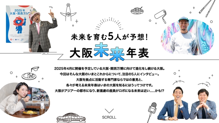 大阪観光局理事長の溝畑さんをはじめ、漫才師・ネイビーズアフロさんなど現在、大阪で注目されている5人にこれからの大阪を予想してもらった「大阪未来年表」を紹介。2035年には「笑い」が医療機関で処方される未来や、2070年に地球外の惑星に第2の大阪が出現する未来など、大阪の可能性はいかに…!
