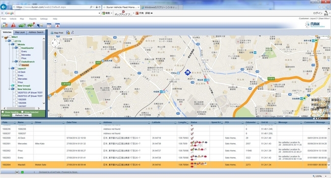 ITURANは、独自の車載装置から集めた車両の位置や状態、運転傾向や燃費情報といった情報を携帯キャリアのネットワークを使ってクラウド側で管理・分析するシステム