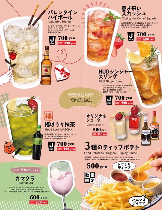2023年2月1日~2月28日はHUB・82ブランド全店(HUB浅草店、HUB福岡PayPayドーム店を除く)にて季節感あふれるオリジナルカクテルとハイボールを販売いたします。HUB・82オリジナルのラインナップを是非お楽しみください。
