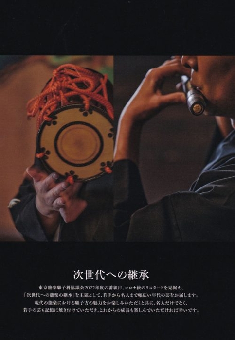 能楽囃子方(笛・小鼓・大鼓・太鼓)が主催し、当会ならではの多彩な番組を企画しています。
