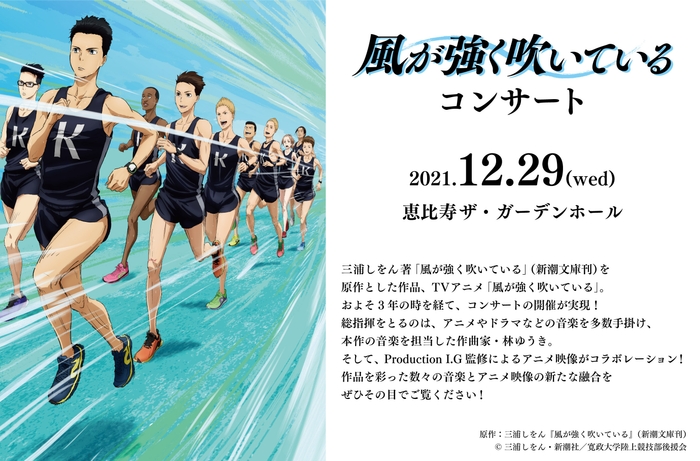 三浦しをん著「風が強く吹いている」(新潮文庫刊)を原作としたTVアニメ『風が強く吹いている』のコンサートが12月29日(水)恵比寿ザ・ガーデンホールにて開催決定しました!