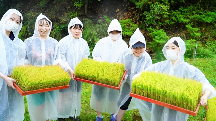 大阪国際大学(大阪府守口市、学長:宮本郁夫)では、ボランティア学生たちが日本の心の原風景が今に残る京都府唯一の村である南山城村において、五感を磨く田植え体験をしました。機械化で効率重視される現代において、大自然の中で泥に素足で入り、腰を曲げて手で植えるという体験は、「苗が丈夫に育って欲しい」という食の大切さの気持ちが湧くだけでなく、食料問題が山積する現代において、食の源流から現代の食文化を見つめ直す貴重な機会でした。