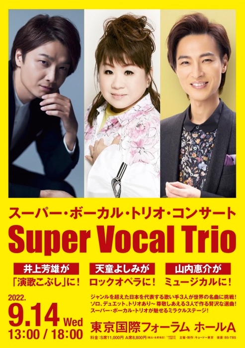 9.14 とんでもないことが起こる!井上芳雄が!天童よしみが!山内惠介が!新境地に挑戦。「スーパー・ボーカル・トリオ・コンサート」開催近づき曲目一部発表! | NEWSCAST