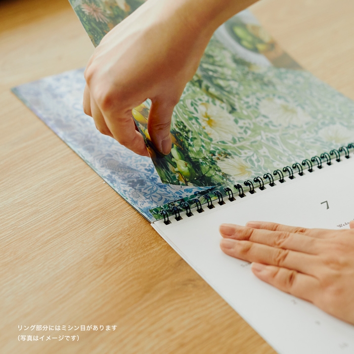 カレンダーとして使い終えたら、リング部分のミシン目で切り離すと1枚の素敵なアートに。