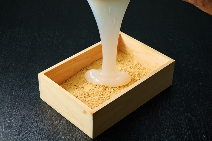 和菓子になじみのない方でも気軽に楽しめる、新しい形のわらび餅として開発されました。なめらかで繊細な口当たりは甘さを控えめに調整し、お子様からご年配の方まで幅広い世代に愛される上品な味わいに仕上げています。和菓子本来の風味を大切にしながらも、現代の食の好みに合わせた絶妙なバランスを追求しました。さらに、抹茶や黒蜜、きなこなどの伝統的な和の素材との相性も抜群で、お好みのトッピングや組み合わせを楽しみながら、あなただけの特別な味わい方を見つけられるのも大きな魅力の一つとなっています。