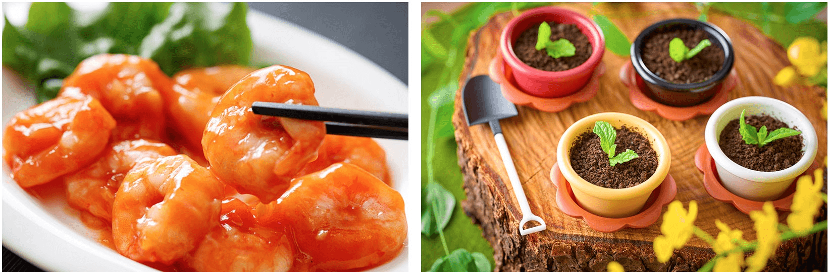 左:鬼怒川観光ホテルに来たら是非ご賞味いただきたい料理長自慢の一品「エビチリ」。甘辛ソースが絡んだぷりぷりの海老はビールのお供にも、ご飯のおかずにもぴったりの美味しさです。