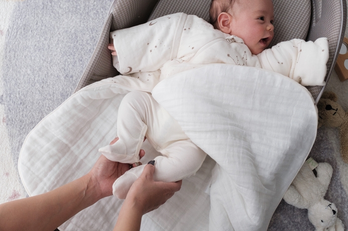 日本では掛け布団をかけて寝ることが主流ですが、欧米では一歳未満の赤ちゃんには窒息などの事故防止の観点からスリーパーの着用が推奨されています。赤ちゃんの顔にお布団がかかる心配もなく、かけ直す心配もないので赤ちゃんの快適さはもちろん、日頃頑張っているママやパパも安心して過ごすことができます。