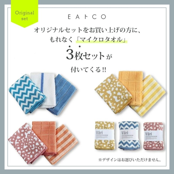 イイトコのオリジナルセットをご購入いただくと、吸水性・速乾性に優れた「Variマイクロタオル3枚セット」をプレゼント!!