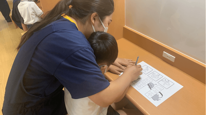 アプリを用いて楽しそうに取り組みます。