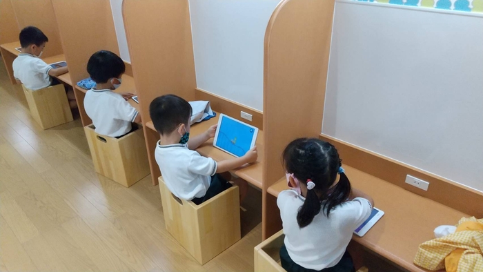 こどもたちは、ひとり一台のタブレットを持ち、