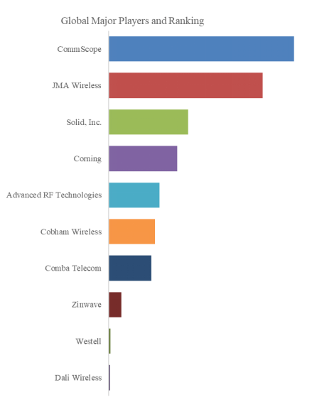 世界の主要なフルマネージド分散アンテナシステムメーカーには、CommScope、JMA Wireless、Solid, Inc. などが含まれます。2024年時点で、上位3社の収益シェアは全体の約47.51%を占めています。