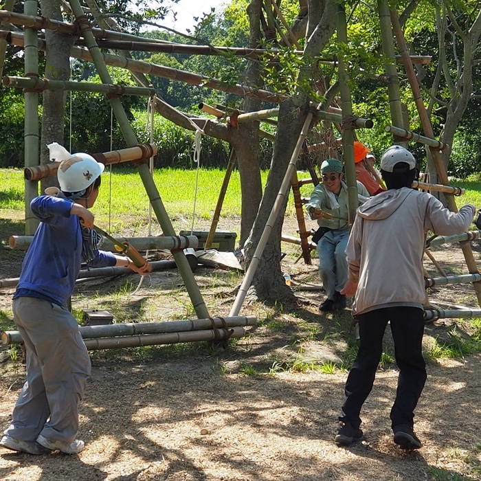 遊具や秘密基地、からくり装置などが一体となった竹の遊び場「竹の砦」では、本能的に子どもたちが自由に遊びたくなる自然遊具を体験できます。