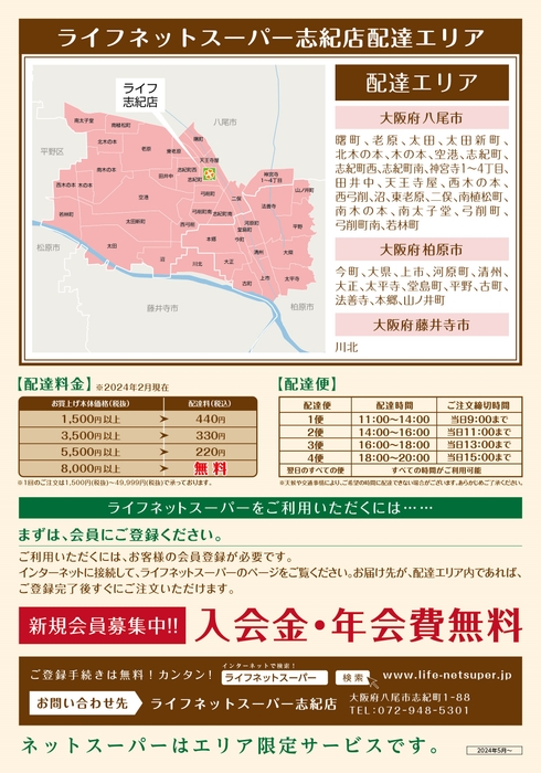 “おいしい” “ワクワク” “ハッピー” をお届けするライフコーポレーションは、6月19日(水)より志紀店で「ライフネットスーパー」のサービスを開始しました。